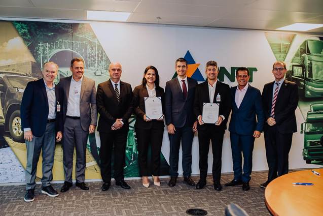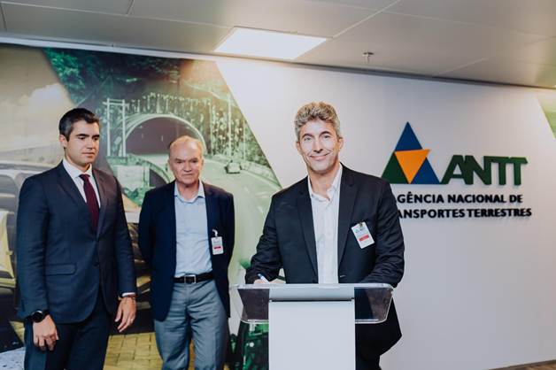 Na foto, Paulo Lopes (diretor Way Brasil) e diretores da Way-364 e Way-153, Guilherme Theo Sampaio, diretor geral da ANTT e outros diretores da ANTT