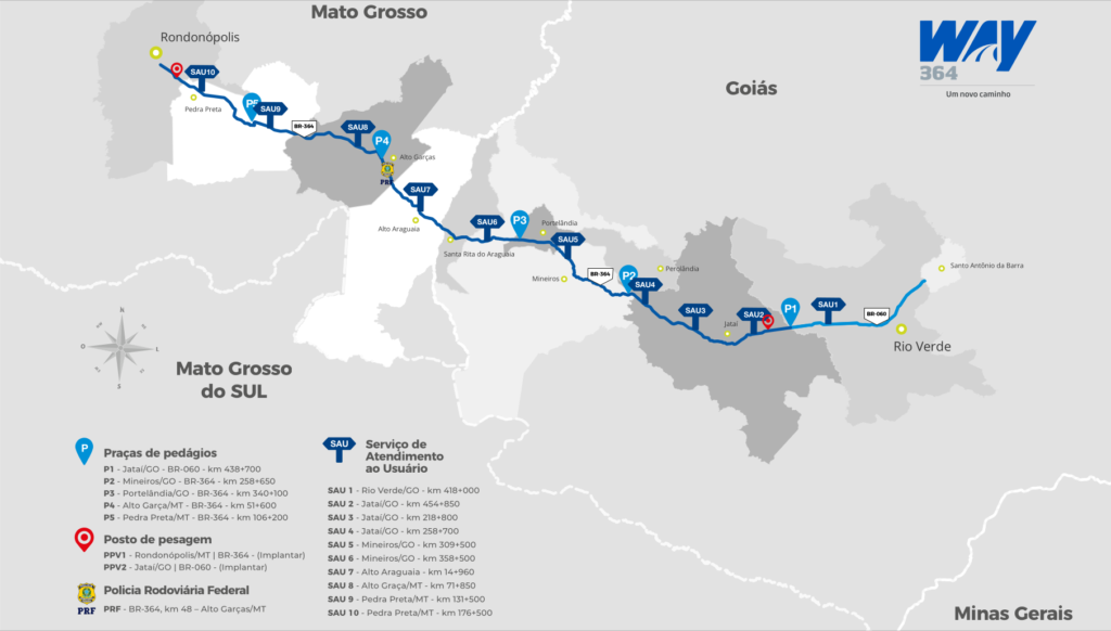 Contém informações sobre as bases de serviços de atendimento ao usuário, postos da Polícia Rodoviária Federal, praças de pedágio e posto de pesagem.